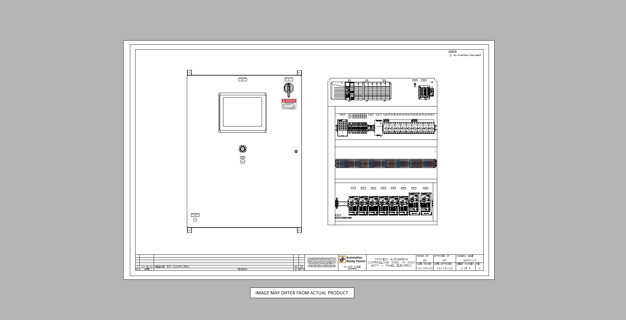 With this control panel, the ControlLogix 5580 PLC can be programmed flexibly with many logic options and HMI with features and settings for operational flexibility. Automation Ready Panels pre-programs this system with Discrete Input Delay (On/Off Timers) programming blocks to keep inputs from flutter or can be used for delay timers on levels, photoeyes, or other sensors. Analog Scaling programming blocks are used for analog inputs/outputs. Motor, VFD, and devices programming blocks are included with feature rich functionality (Rockwell Machine Builder Library V12 and Power Device Library V2.2). Statistical Analysis programming blocks can be used for average and standard deviation calcs for a sample size. VFDs are networked over Ethernet/IP to reduce IO requirements and bring in smart data from the device. Other communications types to Micro800 PLCs, CompactLogix PLCs, Micrologix PLCs, Fanuc Robots, and SMC valve banks are included. A full state machine, shell sequencer programs, and a safety program have been added to reduce final integration time. The HMI has pre-designed graphics for OEE production data (current and previous shift), Cycle Timer, Production Rate, Recipe Status, State Machine and Sequencer Status, Alarming and Alarm Management, VFD control status and faults popup, Valve and device control and status popups, settings input boxes, motor valve analog discrete device objects with breadcrumbs, historical trending, user security, recipe management, PDF Viewer with manuals and electrical drawings embedded in the HMI, Process Reports, Preventive Maintenance Report, Emailing Reports, and Batch Tracking. If desired, one of Automation Ready Panels controls engineers can program up to one hour of free programming (**) to finish off your sequencer, meeting your applications needs. This means that a fully functional controls system can be delivered and ready to install, wire sensors and motors, power up, and the system is up and running.